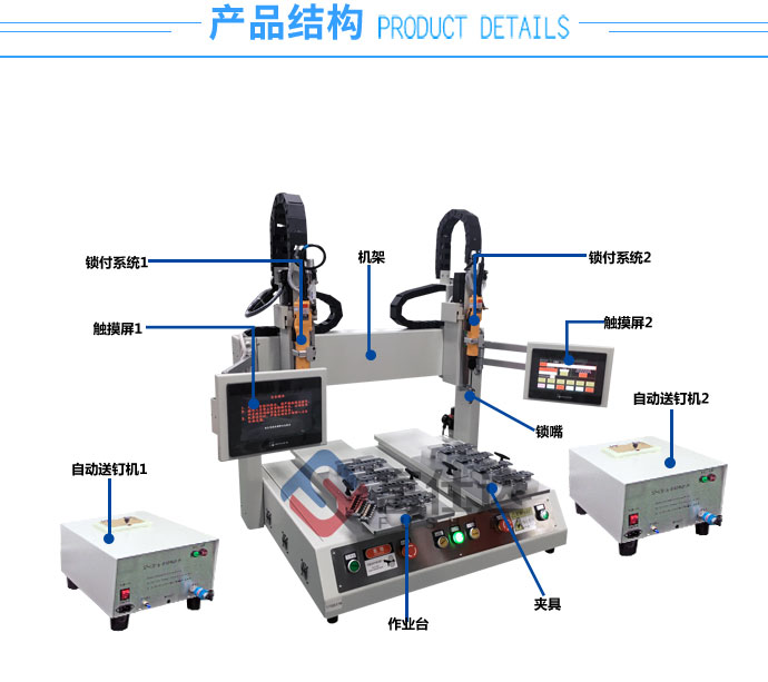 雙系統(tǒng)坐標(biāo)式鎖螺絲機(jī)具有坐標(biāo)式所有優(yōu)點(diǎn),不同的是雙鎖付系統(tǒng)采用兩臺(tái)獨(dú)立的自動(dòng)送釘機(jī)和電批,分別用PLC控制各自電批的工作路徑,一臺(tái)設(shè)備可同時(shí)完成不同產(chǎn)品的螺絲鎖付工作,也可完成同一產(chǎn)品不同部位螺絲的鎖付工作,設(shè)備功能與普通坐標(biāo)式自動(dòng)擰螺絲機(jī)類似,搭配觸摸屏即可操作,可自行更改鎖付路徑。設(shè)備功能更完善。