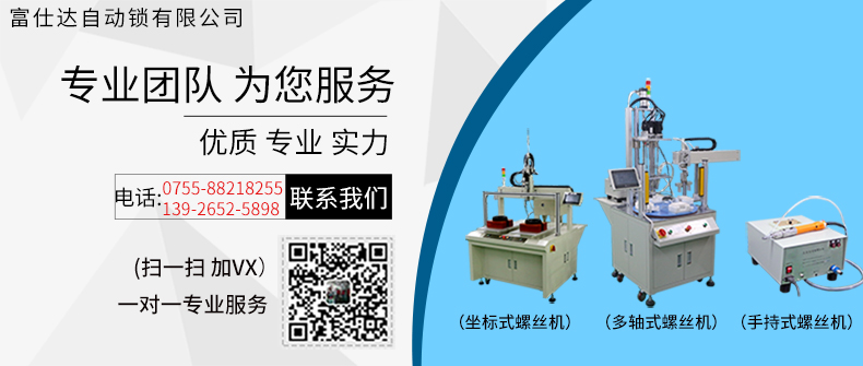 富仕達(dá)擁有獨(dú)立研發(fā)設(shè)計(jì)團(tuán)隊(duì),200多位自動(dòng)化高級(jí)工程師,5000㎡自動(dòng)鎖螺絲機(jī)生產(chǎn)、測(cè)試車間,專業(yè)售后服務(wù)團(tuán)隊(duì),為客戶提供方案設(shè)計(jì)、設(shè)備制造、操作培訓(xùn)、售后服務(wù)等一站式服務(wù)。 公司將持續(xù)提升技術(shù)創(chuàng)新和產(chǎn)品服務(wù)方面的優(yōu)勢(shì),堅(jiān)持“專業(yè)、精工、服務(wù)”的企業(yè)理念,聚焦于自動(dòng)鎖螺絲設(shè)備生產(chǎn),通過(guò)系統(tǒng)的一站式解決方案,真正的幫助客戶提升效率、降低成本,提升客戶的核心競(jìng)爭(zhēng)力。